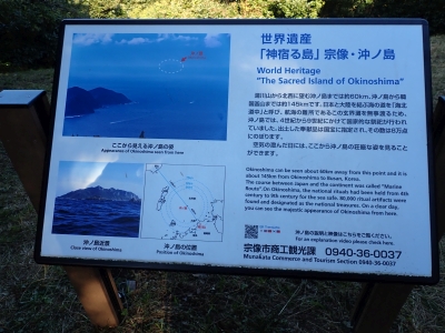| 山頂にある説明板(10:05) | 沖ノ島が微かに見える | 山頂を通り越して一旦降りグライダー基地へ | |