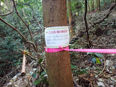 | 中原登山口(11:10) | 谷を歩く | 蜂の巣注意 | |