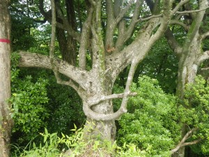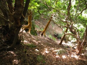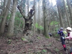 | ここは左へ標識の通り | 登山道へと入りこむ | 枯れた奇木 |