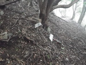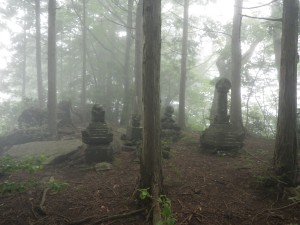 | ガスが深い | 石塔とあるので立ち寄る | 石塔が並ぶ |