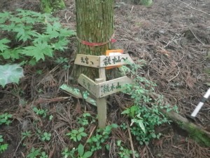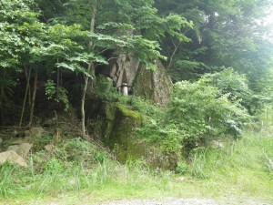 | ショートカットできそうなので入り込む | 再び林道に出た | 何か祀られている |