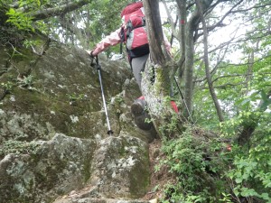 | 少し眺めがよくなってきた | ヒメシャラが多い | 岩場を通過 |