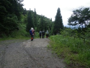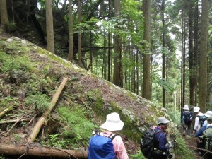 | 千人寝れそうな仙人枕 | 林道に出た | しばらく林道を歩くが |