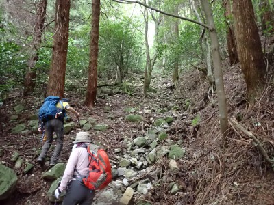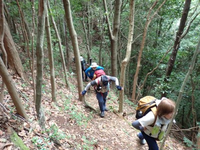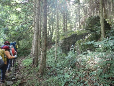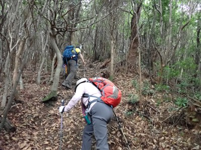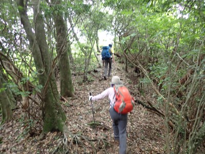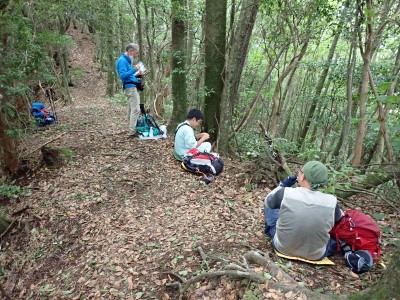 登山口-(65分)-林道-(30分)-山頂-(25分)-林道-(55分)-登山口 ※休憩時間含まず、全行程で約4時間。 |